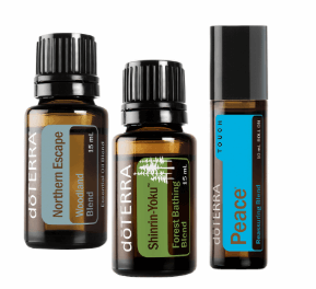 A harmonious trio of doTERRA favorites: the grounding Shinrin‑Yoku blend, the sacred scent of Northern Escape filled with trees such as Frankincense, Hinoki, Siberian Fir and Balsam Fir, and the reassurance of Peaceful Blend bringing play, peace and childlike joy.